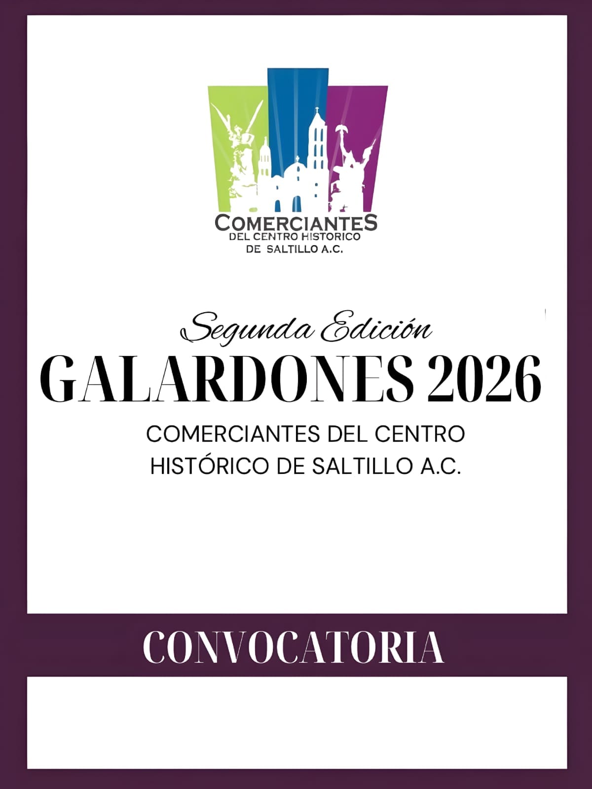 La Asociación de Comerciantes del Centro Histórico de Saltillo anunció la apertura de la convocatoria para la Segunda Edición de los Galardones del Centro Histórico de Saltillo 2026, reconocimiento que distingue la trayectoria, el legado y la perseverancia de comerciantes que han contribuido de manera significativa al desarrollo económico, social y cultural del primer cuadro de la ciudad.