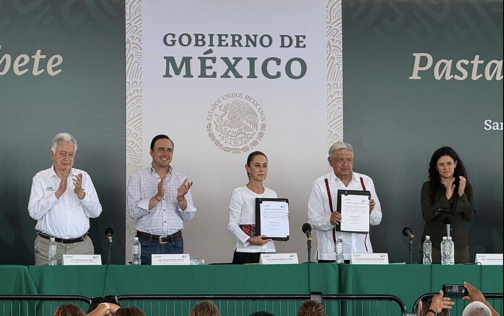 En Sabinas, Coahuila, el presidente Andrés Manuel López Obrador y la mandataria electa Claudia Sheinbaum firmaron un acuerdo para asegurar que el rescate de los restos de los mineros en Pasta de Conchos y El Pinabete continúe en la próxima administración. El gobernador Manolo Jiménez agradeció el compromiso del presidente y subrayó el impacto positivo para las familias afectadas.