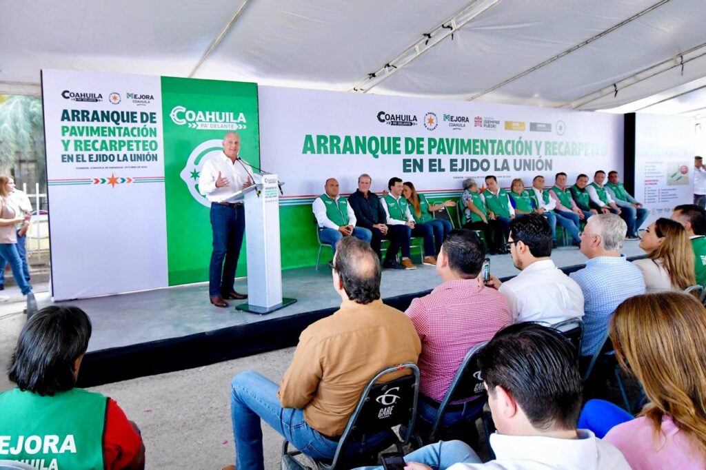 Esta tarde el gobernador del Estado de Coahuila, Manolo Jiménez Salinas y el alcalde Román Alberto Cepeda González, arrancaron los trabajos de obra de pavimentación y recarpeteo en el ejido La Unión, con una inversión por el orden de los 3.1 millones de pesos.