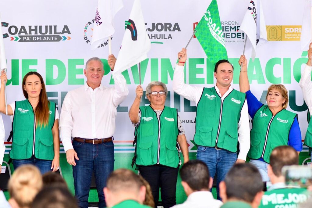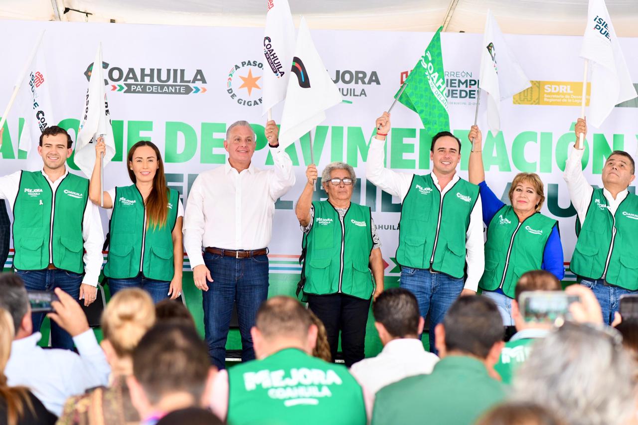 “Seguimos arrancando obras, este es parte de un gran programa que arrancamos aquí en La Laguna, principalmente en Torreón hace ya varios meses, con 100 millones de pesos que serán solo para pavimentación aquí en La Perla de La Laguna junto con nuestro amigo Román”, declaró.