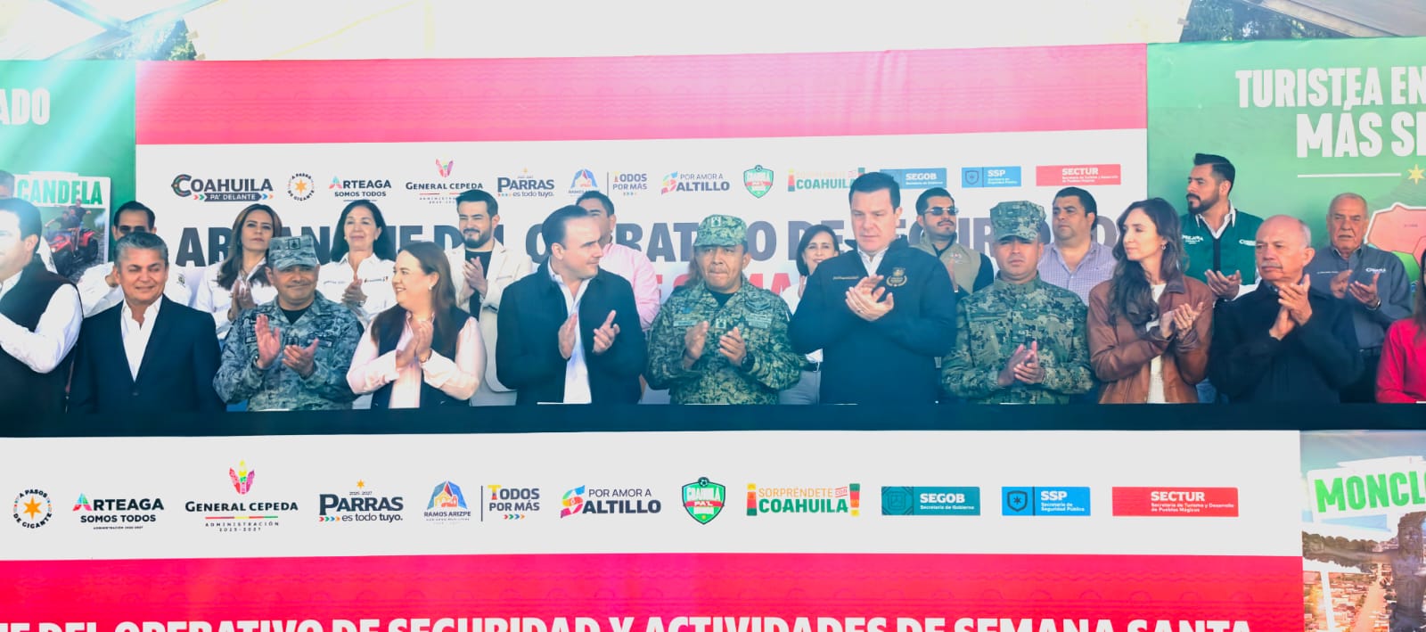 En el evento participaron la alcaldesa de Arteaga, el alcalde de Parras de la Fuente, el alcalde de Torreón, la alcaldesa de General Cepeda, además de corporaciones de seguridad de los tres niveles de gobierno, quienes trabajarán de manera coordinada durante este periodo vacacional.