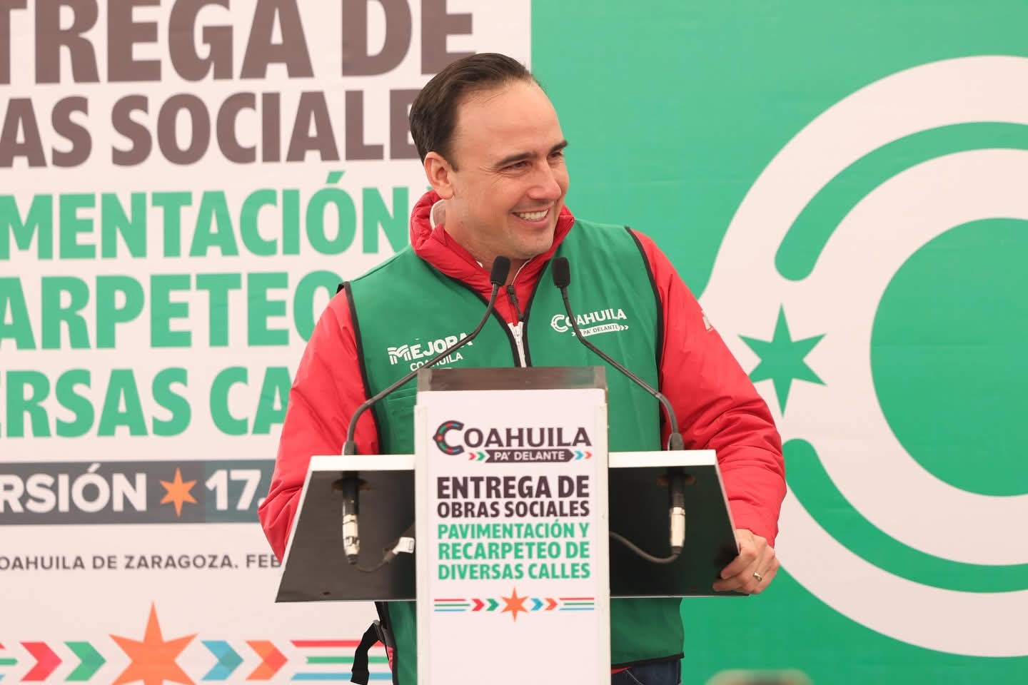 Acompañado por el alcalde Chano Díaz y por la coordinadora estatal de Mejora Coahuila, Claudia Garza, el mandatario destacó que estas acciones forman parte del trabajo en equipo para mejorar la infraestructura urbana y elevar la calidad de vida de las familias.