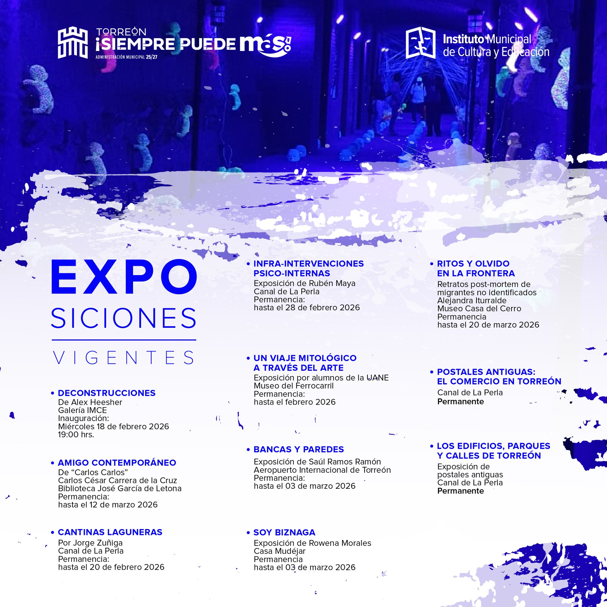 El Gobierno Municipal de Torreón invitó a la ciudadanía a recorrer las distintas galerías y espacios culturales de la ciudad, donde actualmente se presentan diversas exposiciones de arte en sus múltiples expresiones.