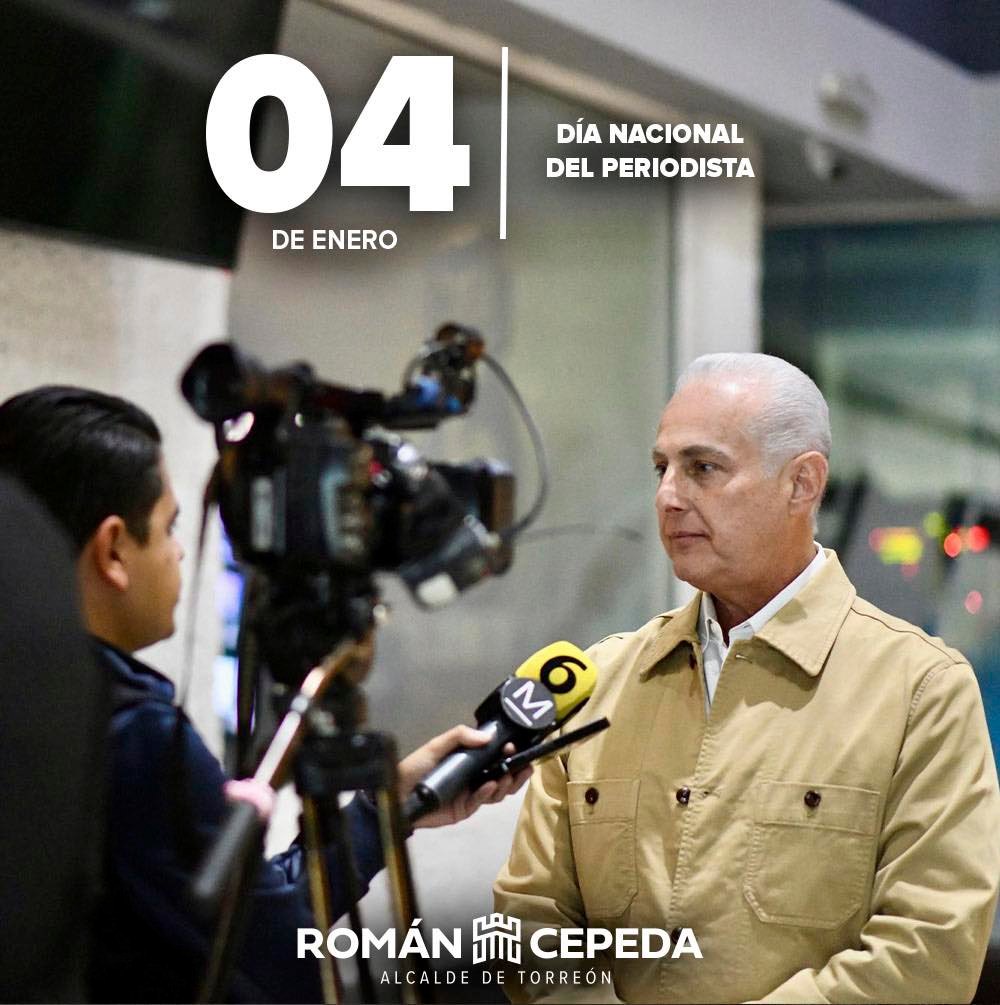Con motivo del Día Nacional del Periodista, el alcalde de Torreón, Román Alberto Cepeda, felicitó y reconoció el trabajo de las y los periodistas de la ciudad, destacando su profesionalismo y ética en la tarea de informar y dar voz a la ciudadanía.