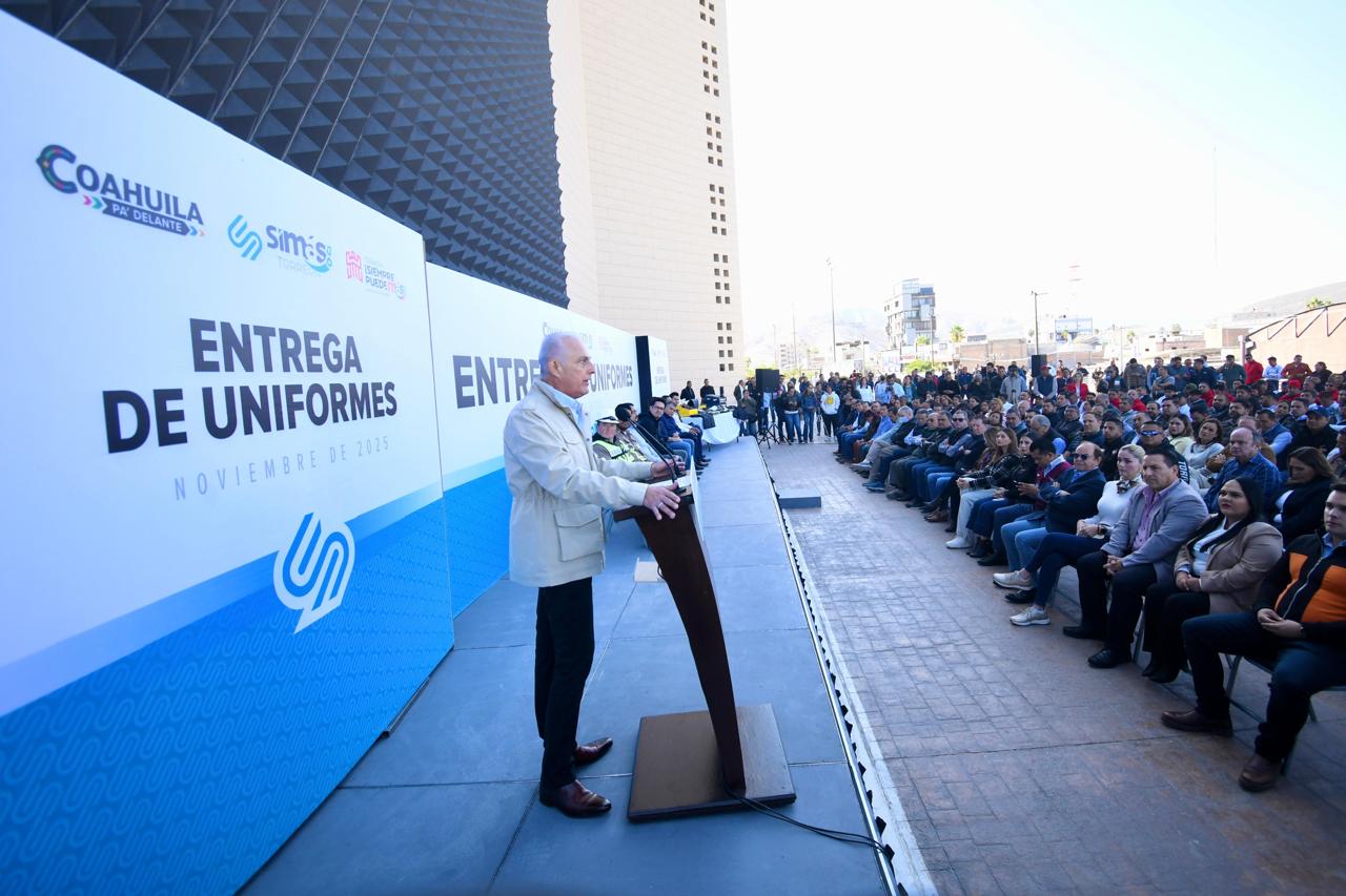 “En la actualidad tenemos retos diferentes, Torreón es un municipio con un crecimiento exponencial que nos exige generar mejores condiciones en todos los aspectos. En seguridad, por ejemplo, seguimos la línea del Gobernador y trabajamos de manera coordinada y haciendo lo que nos toca. Hace unas semanas entregamos vehículos y hoy los uniformes invernales”, externó el edil.