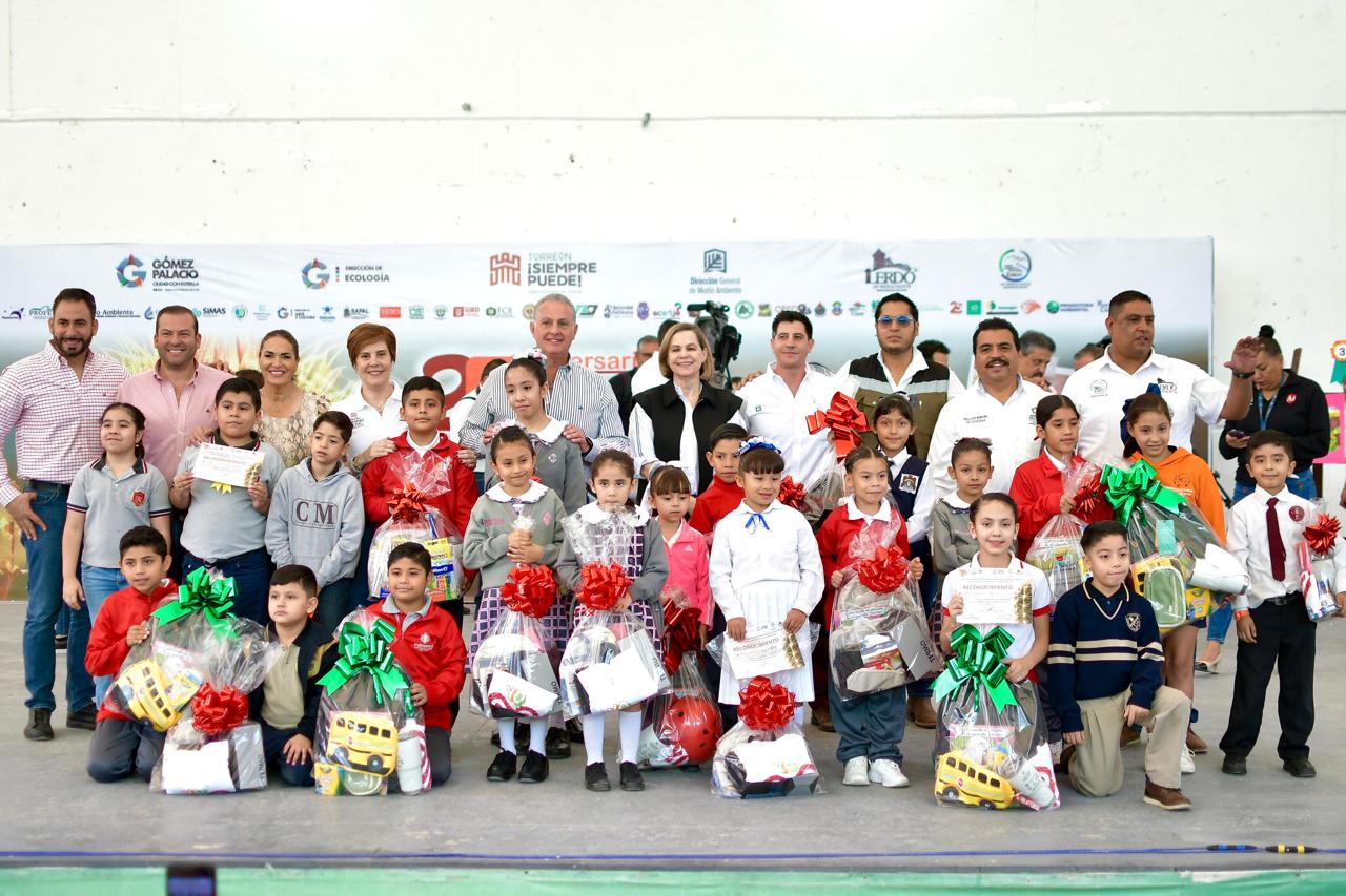 Torreón, Coahuila. A 30 de octubre de 2024. En el marco del 25 aniversario de “Octubre, mes del desierto chihuahuense: nuestro desierto, nuestro futuro”, el alcalde Román Alberto Cepeda González premió a los ganadores del concurso de dibujo regional, dentro de la Feria Ecológica que se realizó en el teatro del Bosque Urbano de Torreón. La actividad contó con la participación de los municipios de Torreón Coahuila, Gómez Palacio y Lerdo Durango. El Presidente Municipal de Torreón, felicitó a los alumnos que presentaron sus dibujos alusivos al desierto chihuahuense y los exhortó a seguir construyendo sus sueños a través del estudio y competencias. “Felicidades, ustedes son el futuro de Gómez, de Lerdo, de Torreón, de La Laguna, de Coahuila, de Durango, y por consecuencia, el futuro de México, por eso que estén compitiendo en este 25 aniversario de este evento que año con año se hace con escuelas de los tres municipios, y que participan en una competencia sana en la que ustedes niños, son la parte fundamental, más allá de recibir un premio, su participación y presencia es lo más importante”, expresó. Cepeda González dijo que lo más importante de este evento es la convivencia como Zona Metropolitana y entender las características de la región como es el clima. “Somos una Zona Metropolitana de 1.5 millones de habitantes, en la que convivimos y habitamos con el calor, el desierto y las bondades que tiene esta región, por eso hoy les pido que sigan estudiando, sigan compitiendo, continúen divirtiéndose y construyendo esta que es la quinta región más importante de México, y que a ustedes les va a tocar convertirla en la número uno”, señaló. El Alcalde alentó a los estudiantes a divertirse, perseguir sus sueños, y a seguir dibujando el desierto de chihuahua. Además, reconoció a los padres de familia y a los maestros, por dedicar su tiempo a formar el futuro de La Laguna, de Torreón de Gómez Palacio y Lerdo. “Sean siempre bienvenidos a esta su casa, Torreón, el premio es importante, pero el reconcomiendo indiscutible lo van a tener el día que cristalicen sus sueños, felicidades”, dijo. Diana Susana Estens de la Garza, secretaria de Medio Ambiente en el Estado de Coahuila, destacó que este evento es la oportunidad para que los niños aprendan sobre el desierto chihuahuense. “Vivimos en un desierto y tenemos que conocer las plantas, los animales, las florecitas, la mariposa monarca que también pasa por aquí, conocerlas y quererlas, este concurso de dibujo nos ayuda a darnos cuenta cuáles son estas plantas, animales y que tenemos que cuidar nuestro medio ambiente, Por su parte, Tomás Juan Manuel López Velázquez, director de Medio Ambiente de Torreón, felicitó a los niños que participaron en el concurso, evento que dijo, es muy importante para hermanarse como región metropolitana y generar conciencia colectiva que sirva de empuje a futuras generaciones a ser más empáticos y tener una ciudad más limpia y próspera. El concurso resultó con 21 ganadores, de los cuales, los alumnos que obtuvieron los primeros lugares en las categorías A, B y C, respectivamente, fueron: Mía Rosales Montaño, de la escuela Otilio E. Montaño; José Carlos Salas Sánchez, del Colegio Metropolitano de La Laguna; y Nahomi Margot González Treviño, de la escuela Club de Leones. Además de cuatro menciones honoríficas por categoría. Estuvieron presentes también: Selina Bremer de Cepeda; presidenta honoraria del DIF Torreón; Felipe González Miranda, diputado local; Hugo Dávila Prado, delegado de Mejora en Torreón; Flor Estela Rentería Medina, coordinadora de Servicios Educativos Región Laguna de Coahuila; Cecilio Campos Jiménez, subdirector de Ecología y Protección del Medio Ambiente de Gómez Palacio; Ricardo Díaz Segovia, director de Medio Ambiente en Lerdo. – Torreón ¡Siempre Puede! –