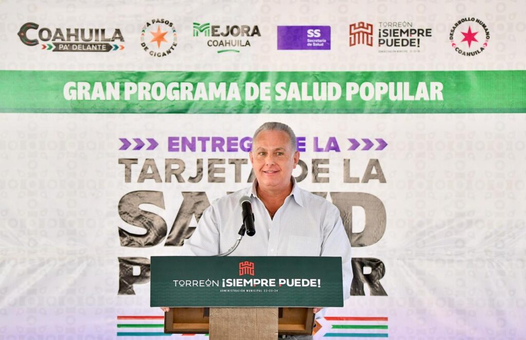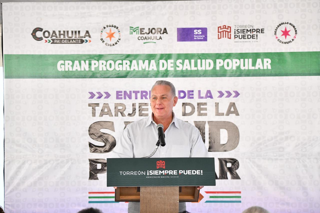 El alcalde Román Alberto Cepeda González, presidió esta mañana la entrega de la Tarjeta de la Salud Popular en Torreón, junto con el secretario de Gobierno del Estado, Óscar Pimentel González, en representación del Gobernador de Coahuila Manolo Jiménez.