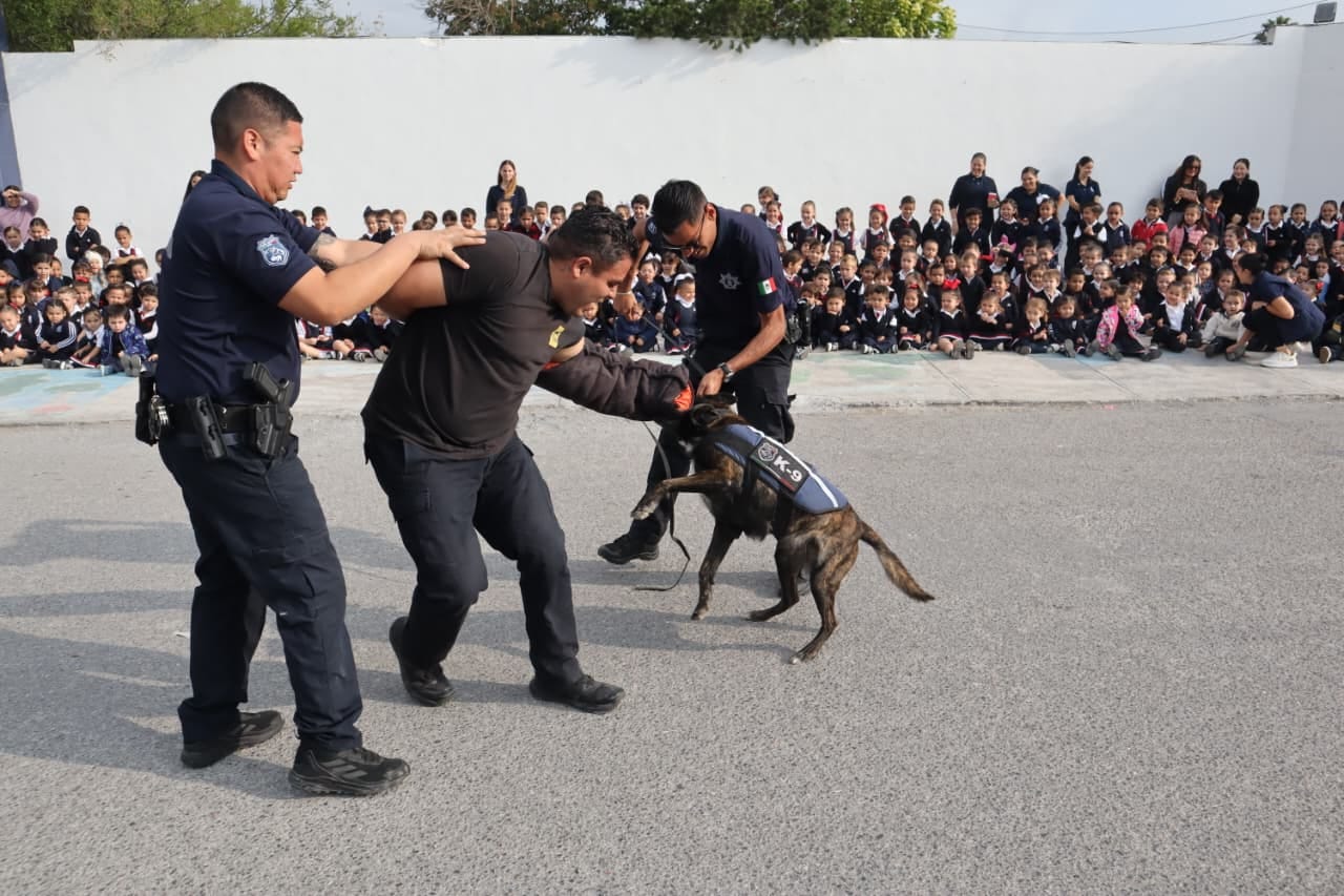 Como ejemplo, en el Instituto Vivir la exhibición la presenciaron cerca de 250 alumnas y alumnos de preescolar, así como de primero, segundo y tercer año de primaria, quienes estuvieron atentos a las exposiciones de los oficiales y se mostraron entusiasmados con la demostración de dron y participación de los elementos caninos.