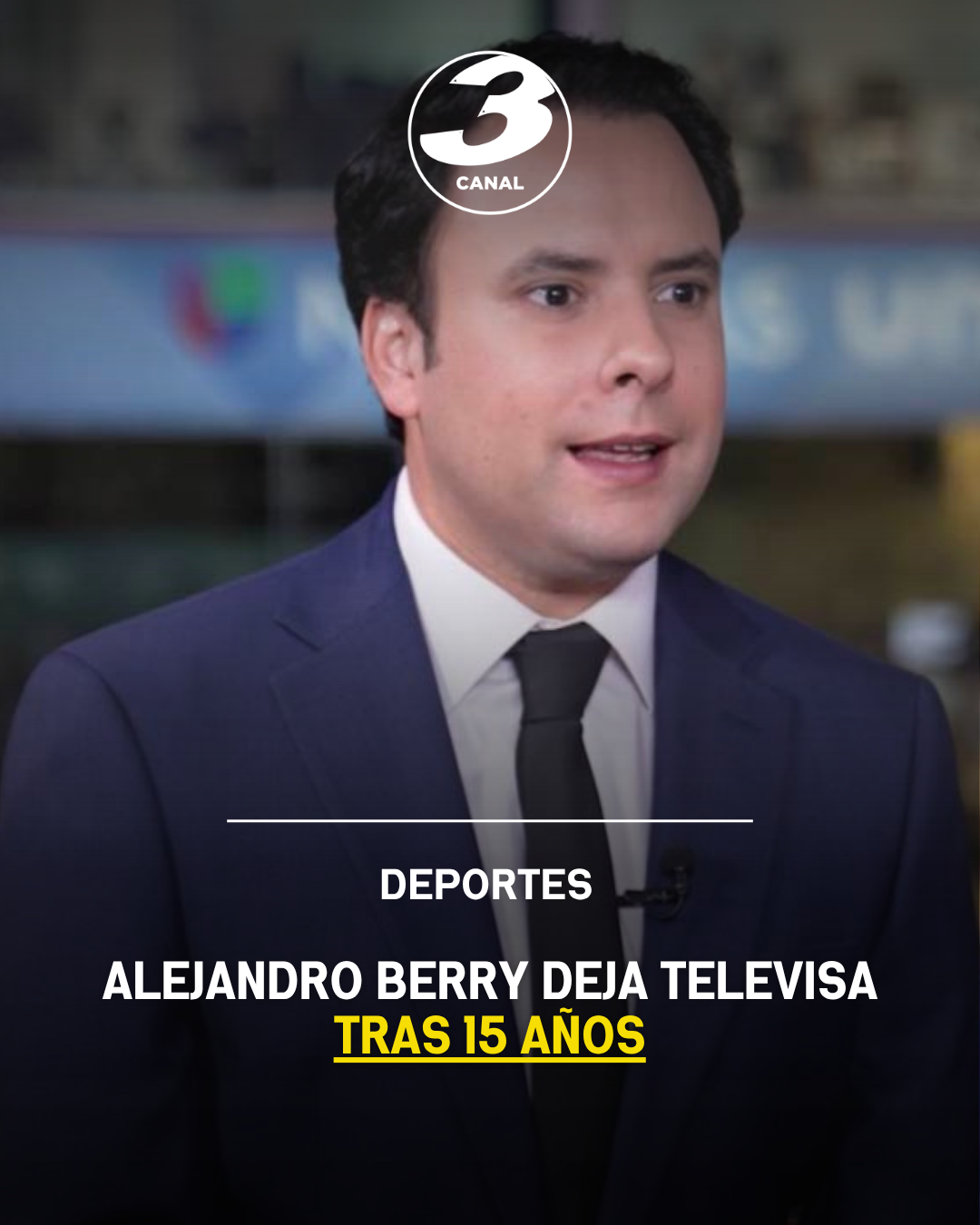 El periodista y conductor deportivo Alejandro Berry anunció su salida de Televisa Deportes, donde trabajó durante 15 años como parte del equipo de TUDN. A través de redes sociales, agradeció a la empresa por las experiencias y amistades obtenidas durante su trayectoria.