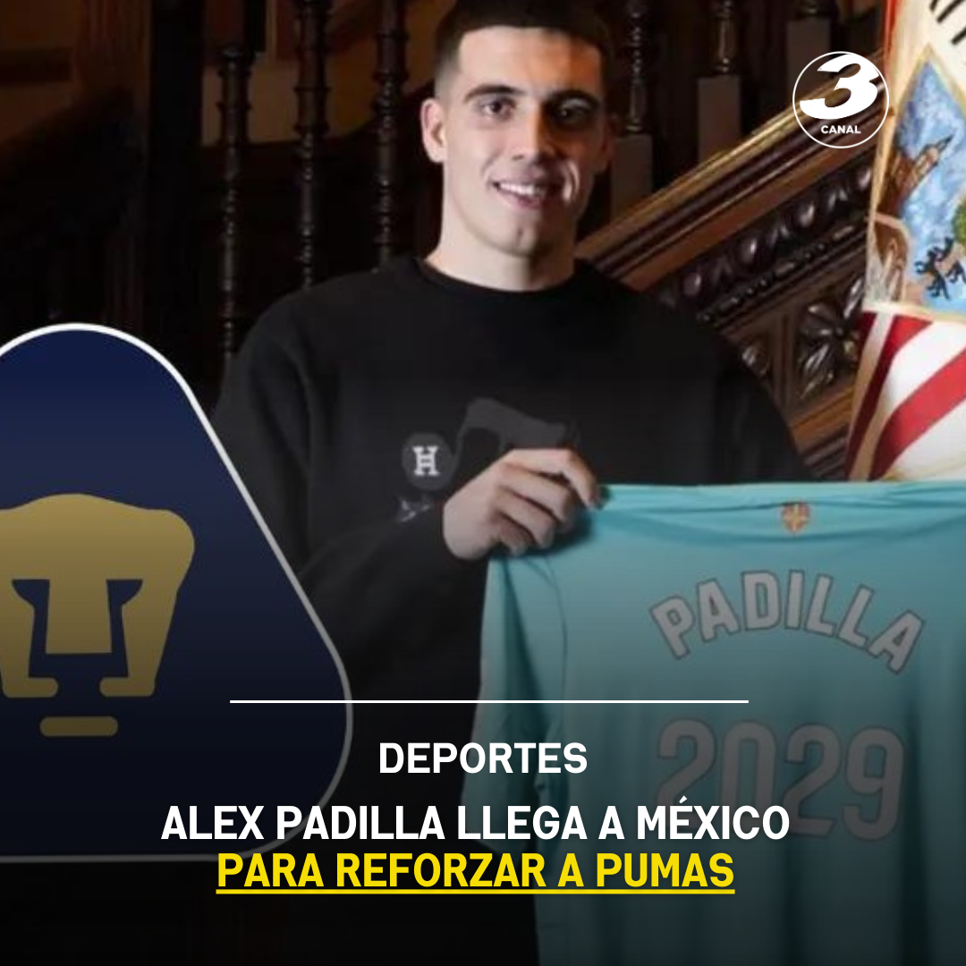 Alex Padilla, portero mexicano-español procedente del Athletic de Bilbao, arribó a la Ciudad de México este martes para cerrar su fichaje con los Pumas de la UNAM. El guardameta será sometido a pruebas médicas en Cantera antes de ser anunciado oficialmente como el primer refuerzo del equipo para el Clausura 2025.