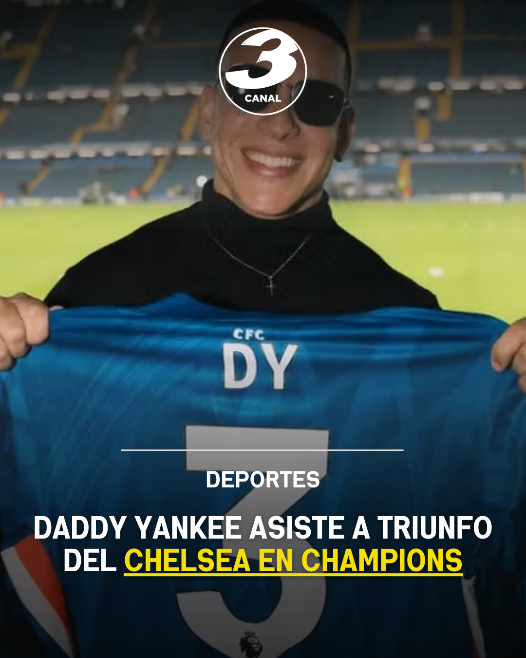 A través de redes sociales, el artista compartió imágenes del encuentro, mientras que el club londinense difundió una fotografía en la que se observa al intérprete con una camiseta del Chelsea con el número 3 y el nombre “DY”.