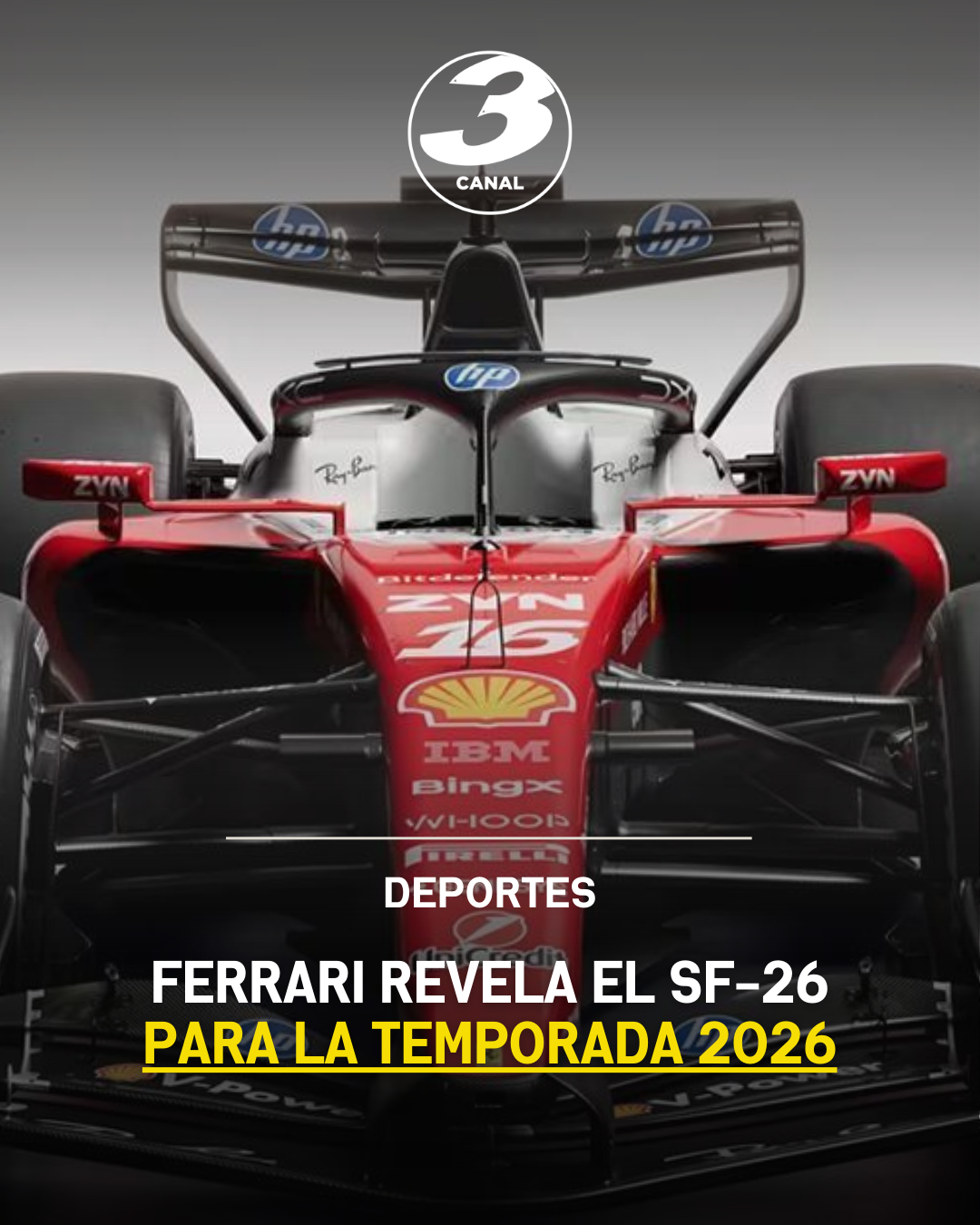 La escudería Ferrari presentó en el circuito de Fiorano, en Italia, su nuevo monoplaza SF-26, con el que competirá en la temporada 2026 de la Fórmula Uno. El vehículo será conducido por Lewis Hamilton, siete veces campeón del mundo, y Charles Leclerc, quienes buscarán devolver al equipo italiano a los primeros planos de la categoría.