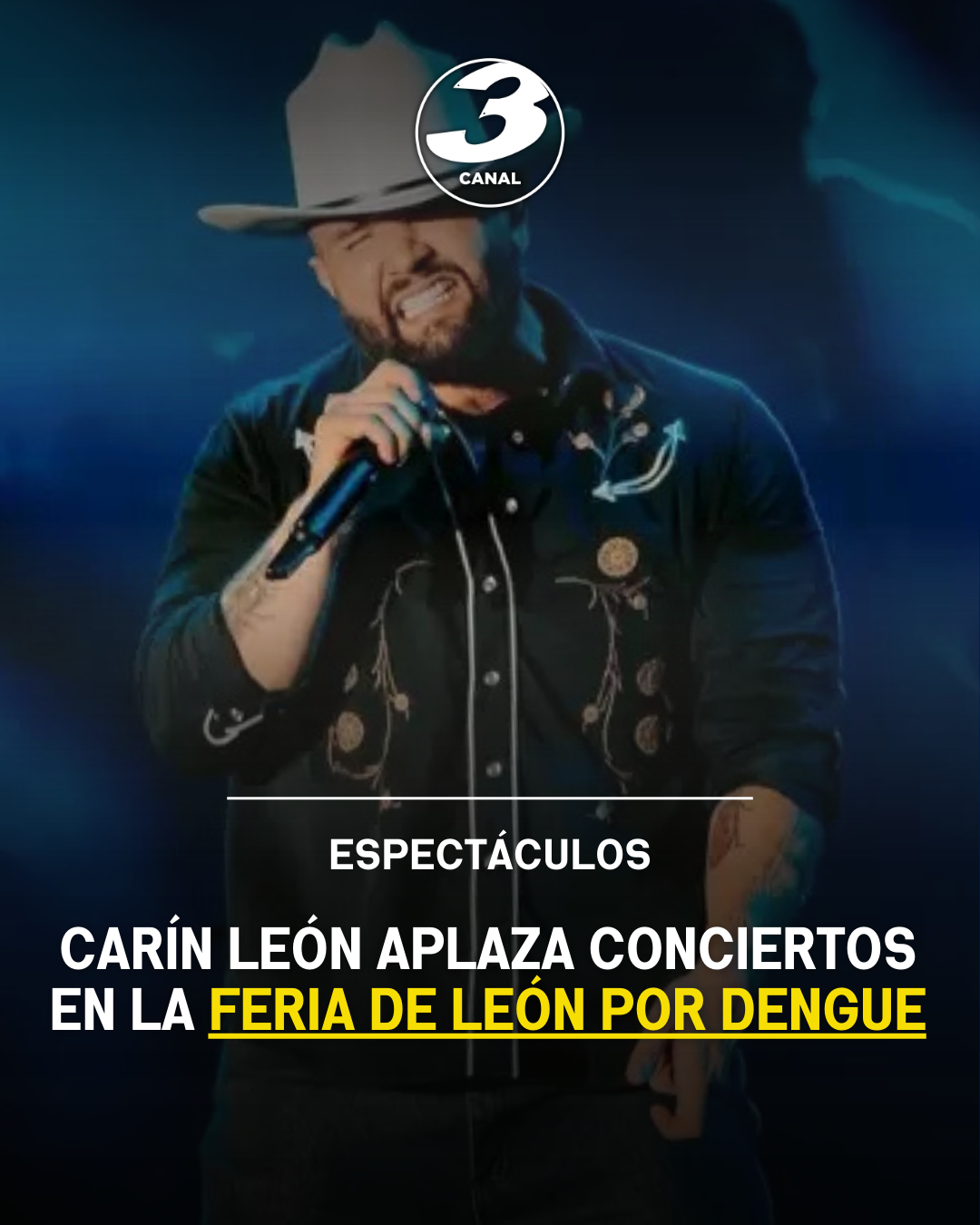 El cantante de regional mexicano Carín León pospuso las presentaciones que tenía programadas en la Feria de León, Guanajuato, luego de ser diagnosticado con dengue, enfermedad que requiere reposo y atención médica.
