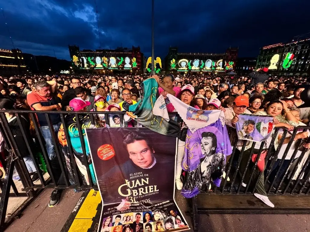 La evocación de las canciones del Divo de Juárez volvió a conmover a miles de personas en el Zócalo capitalino, donde se proyectó el concierto que Juan Gabriel ofreció en 1990 en el Palacio de Bellas Artes, acompañado de escenas inéditas del documental de Netflix Juan Gabriel: debo, puedo y quiero. La velada llenó por completo la principal plaza del país, que una vez más se rindió ante el cantante, cuyas coplas siguen tatuadas en la memoria colectiva, en el corazón y en la punta de la lengua de sus admiradores.