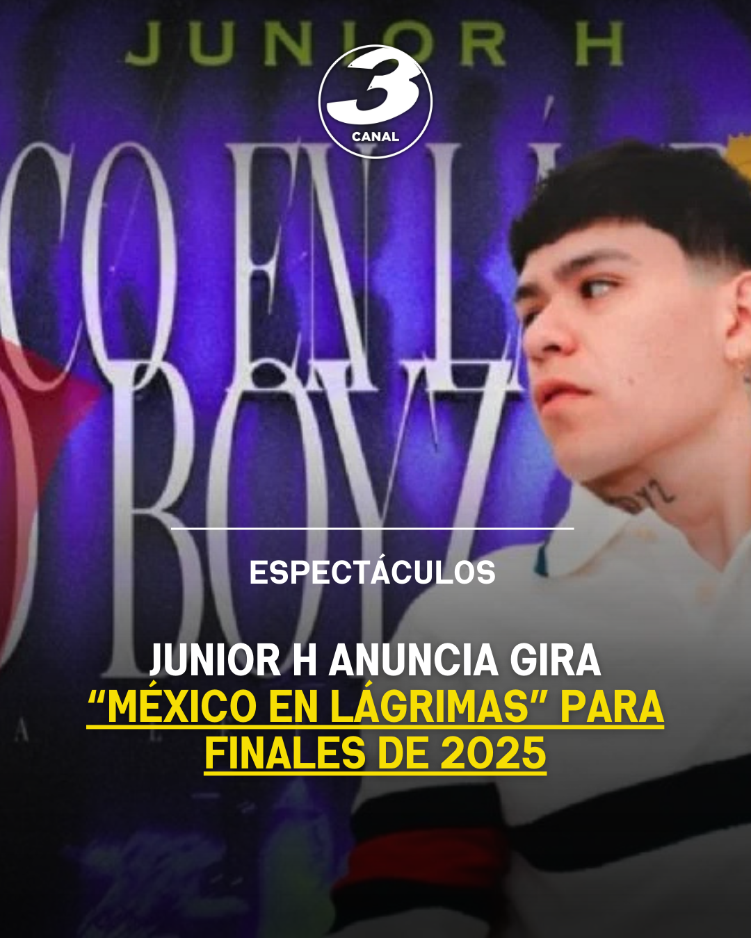 El cantante de música regional mexicana Junior H anunció su gira “México en Lágrimas Sad Boyz Tour 2025”, que incluirá 13 conciertos en distintas ciudades del país, con un espectáculo diseñado para todo tipo de público y un gran despliegue visual.