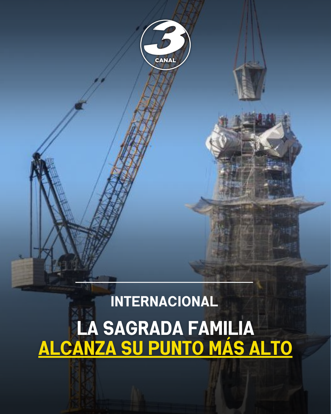 La basílica de la Sagrada Familia llegó a su altura definitiva de 172.5 metros tras la instalación del brazo superior de la cruz que corona la torre de Jesucristo, convirtiéndose formalmente en la iglesia más alta del mundo.