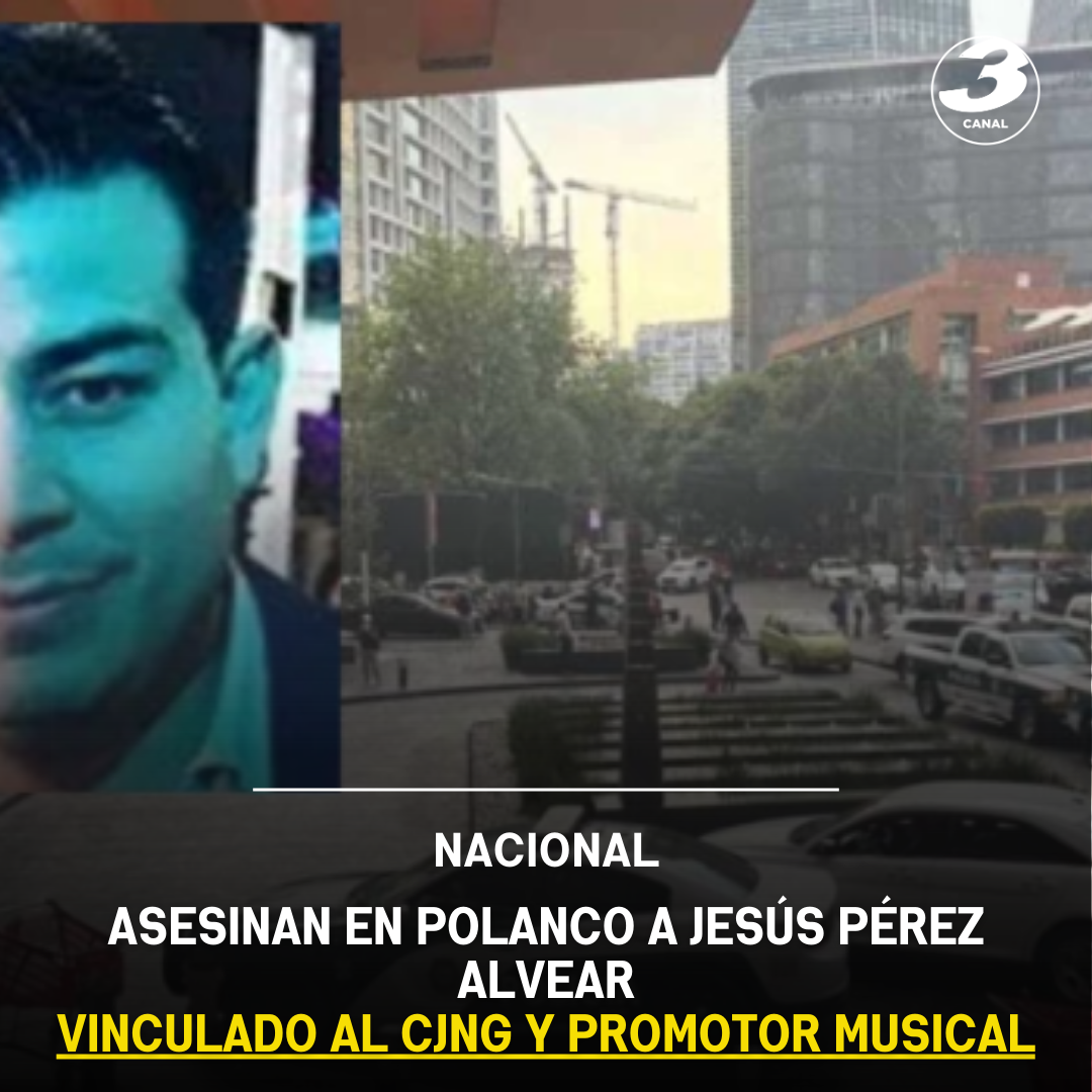 Jesús Pérez Alvear, conocido como “Chucho Pérez”, fue identificado como la persona asesinada este lunes en un restaurante de la plaza Miyana, en Polanco, Ciudad de México. Pérez Alvear, señalado por el Departamento del Tesoro de Estados Unidos como presunto lavador de dinero del Cártel Jalisco Nueva Generación (CJNG) y Los Cuinis, tenía vínculos con el negocio musical.