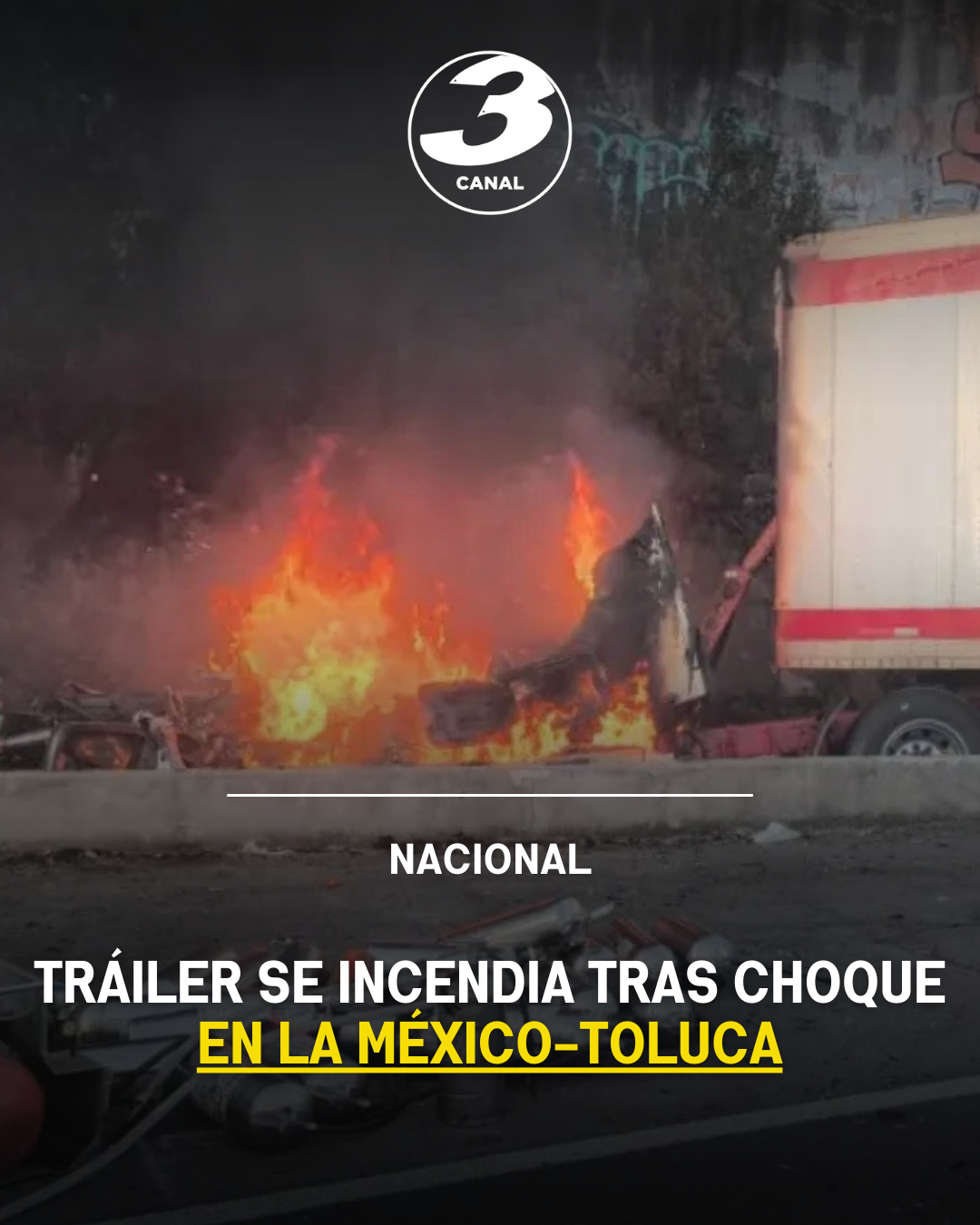 La mañana de este 30 de enero se registró un aparatoso accidente sobre la autopista México-Toluca, en dirección a la Ciudad de México, luego de que un tráiler impactara contra el muro de contención y se incendiara.